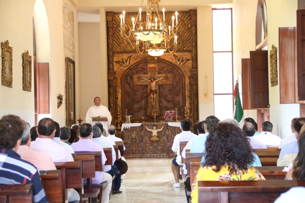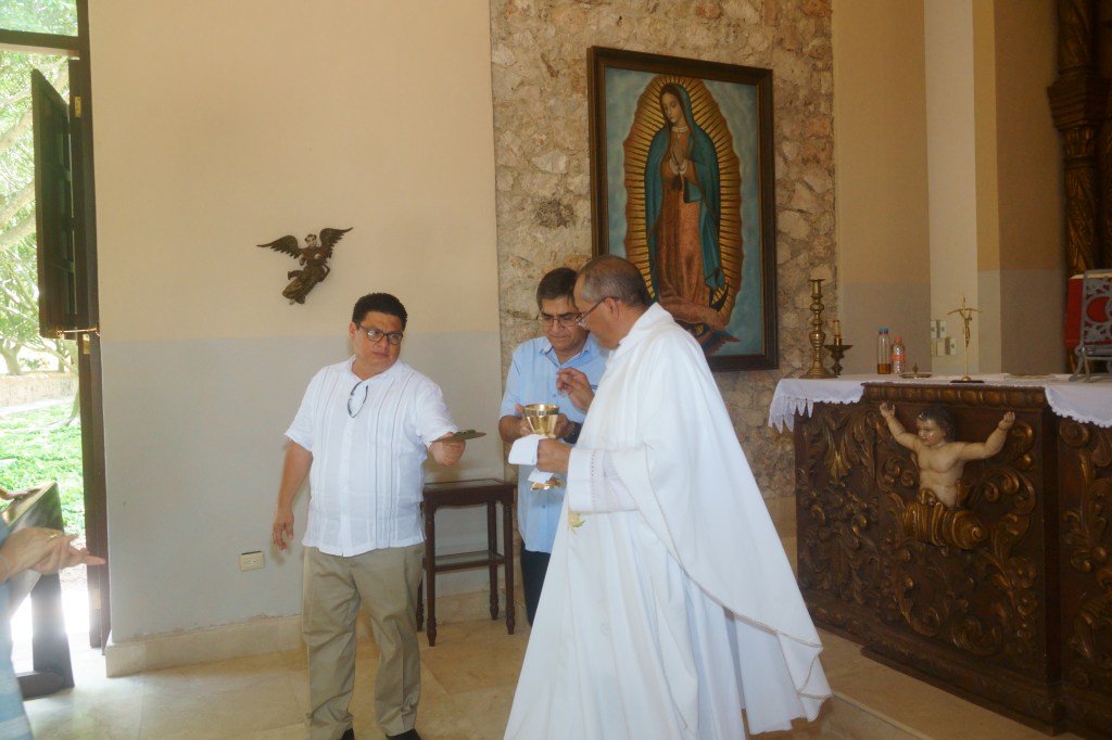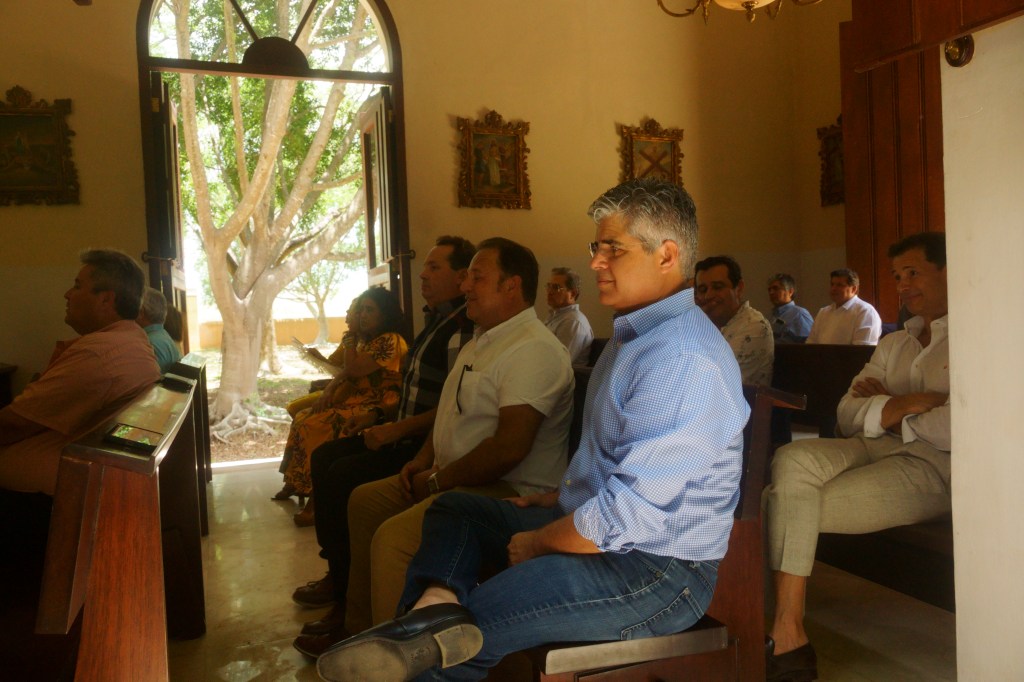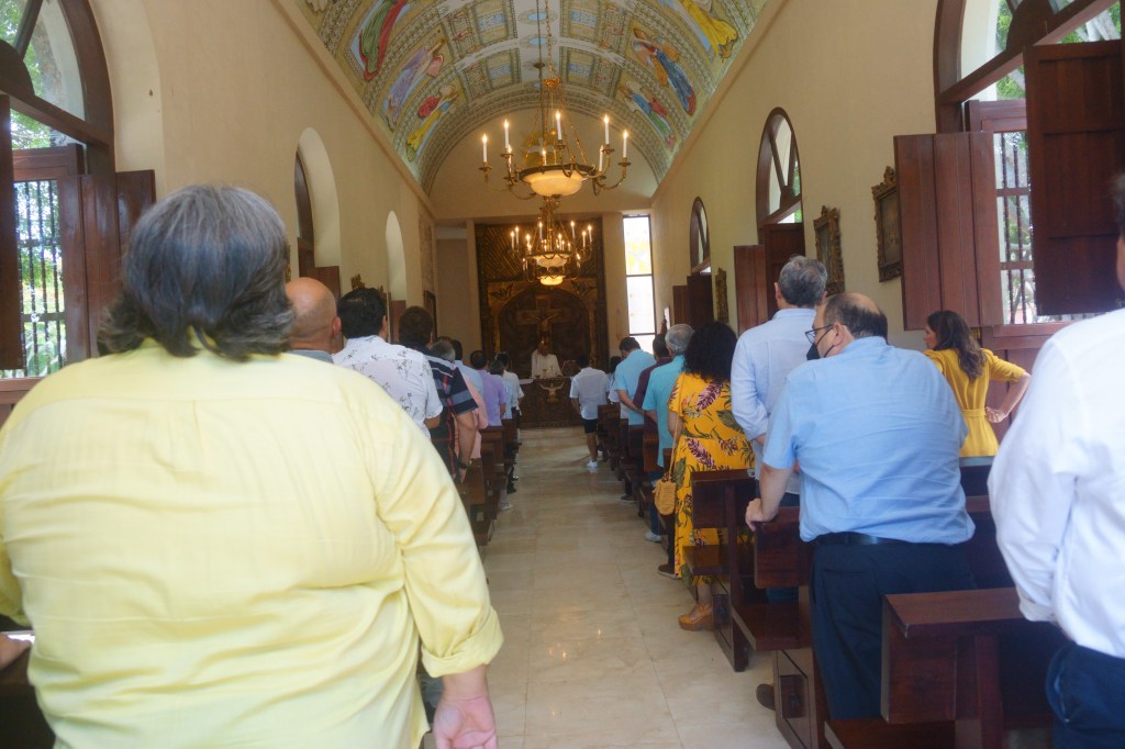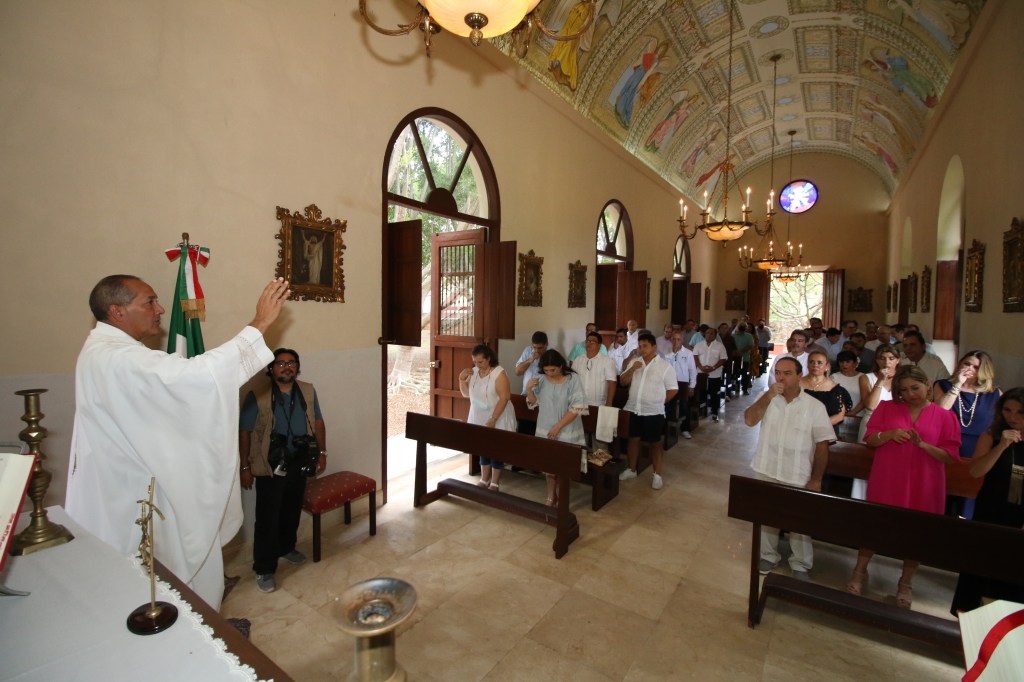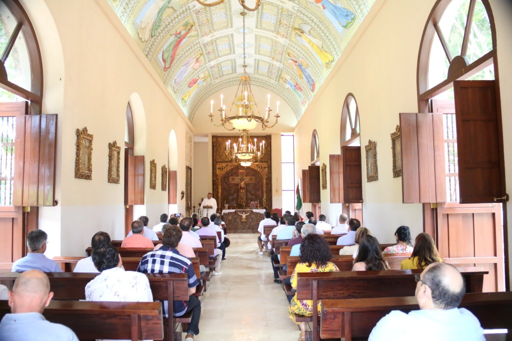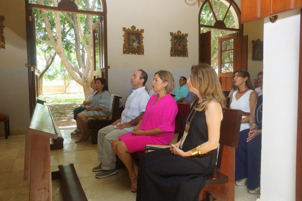 El gorgeo de la Chara Verde, ave yucateca que da la bienvenida a la temporada de lluvias en la Península fue el marco sonoro para el inicio de la ceremonia eucarística que abrió la celebración de reencuentro de la generación CUM 85, en la capilla de la majestuosa hacienda Xtepén.